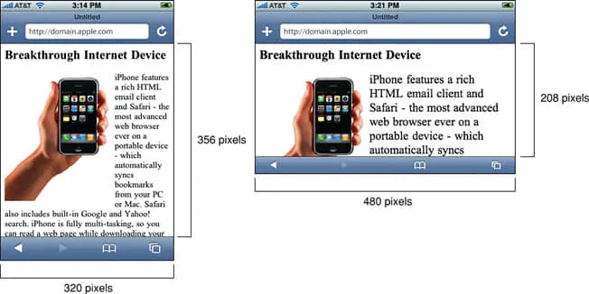 比如,直至并包括 iPhone 4S, iPhone 的 ideal viewport 是 320x480, 无论这个 iPhone 是否是 retina 屏幕,因为 320x480 是这些 iPhone 渲染网页时的理想尺寸。
