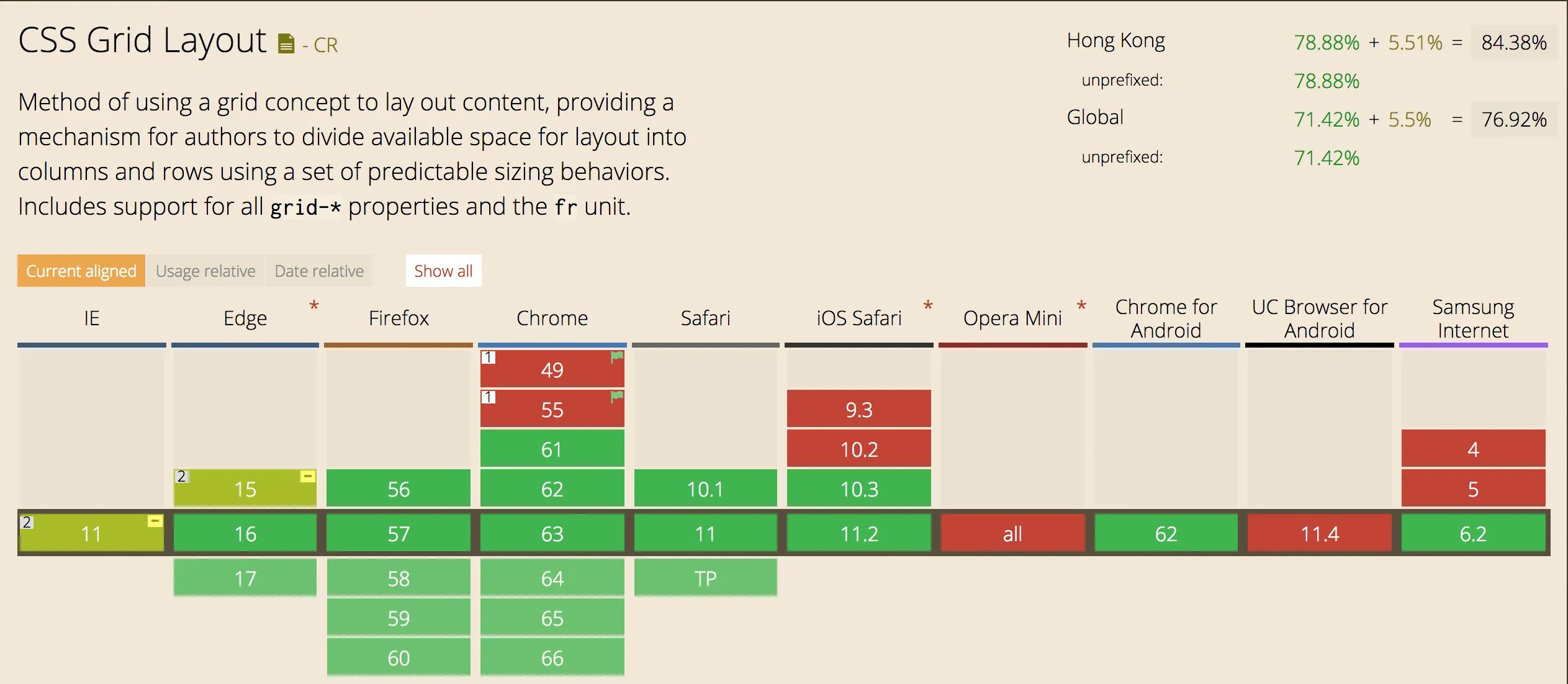 CSS Grid Layout 目前来说还没有全面普及,但是市面上大部分最新的浏览器实现了这个特性
