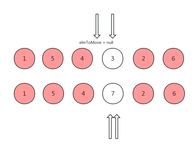 移动完之后,将刚刚 oldCh 中复用的节点 (elmToMove) 设置为 null,然后下次当头指针或者尾指针经过它时会跳过继续往下,并将 ch 的头指针向后移动: