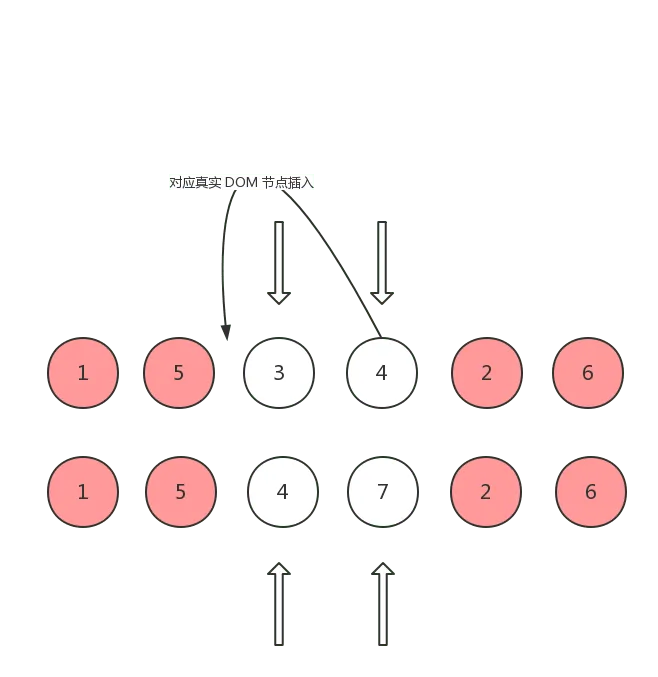 这种情况说明 oldCh 的尾指针指向的 vnode 所对应的真实 DOM 节点可以复用,但是需要移动到 oldCh 头指针指向的 vnode 所对应的真实 DOM 节点的前面,这样才能和 ch 保持一致: